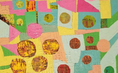 Холодные тона (синий, фиолетовый) контрастируют с теплыми (желтый, оранжевый, зеленый), создавая динамичное равновесие.